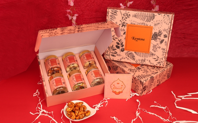 Includes: Masala Makhana, Almond Nutties, 5 Assorted Chocolates, Pearl Diya, Greeting Card